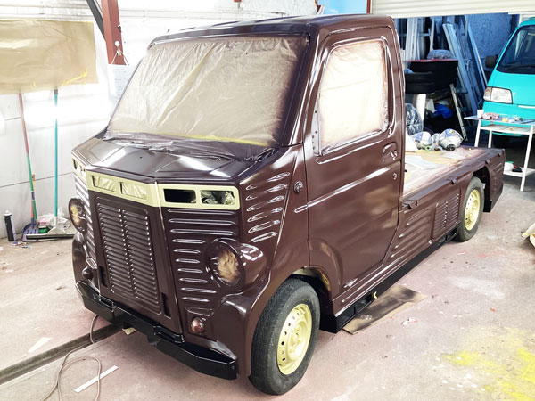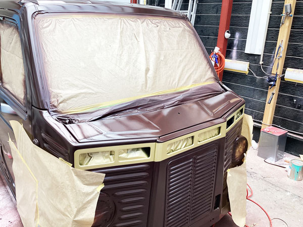 今風のナチュラルなベージュカラーをキャビン・荷台部・ホイールに2トーン塗装しました。丸めの車体に優しい色合いでかわいらしい雰囲気に仕上がっています♪ |
